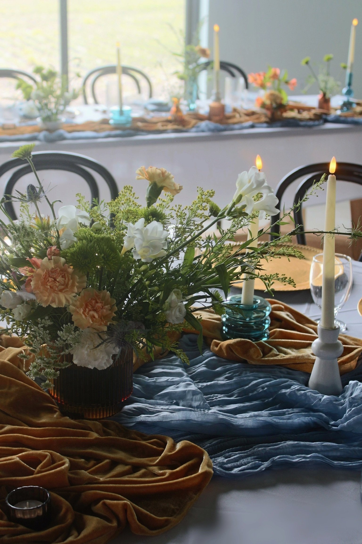 Can be used for your indoor ceremony, around the retro couch, mixed into your dessert table, or anywhere inside the venue that you’d like